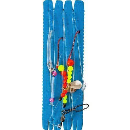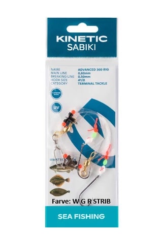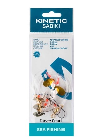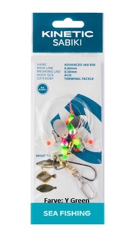 Kinetic Advanced Fladfisk Rig er 5 forskellige kvalitets fladfiskeforfang bundet efter alle kunstens regler med små plastik bomme, perler, gode kroge og kraftige liner.