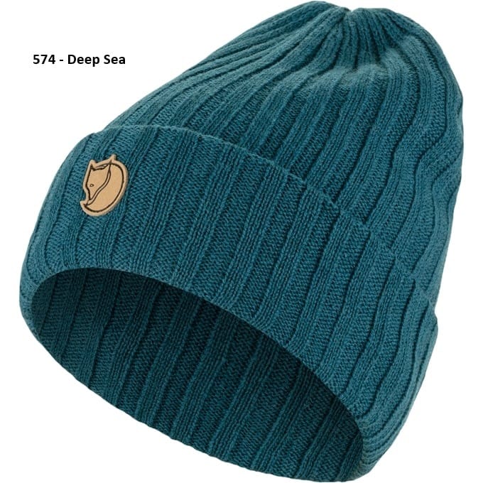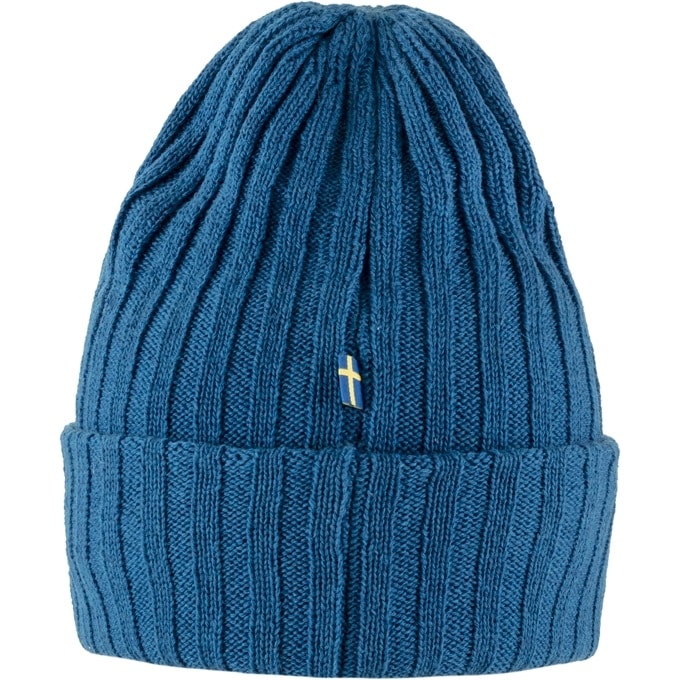 Dobbelt strikket hat i uld, der gør den både varm og holdbar.