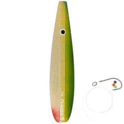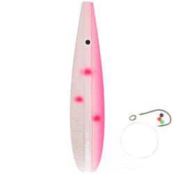Blinket er malet med UV-farver og leveres med et stykke fluorocarbon, en enkeltkrog og perler.