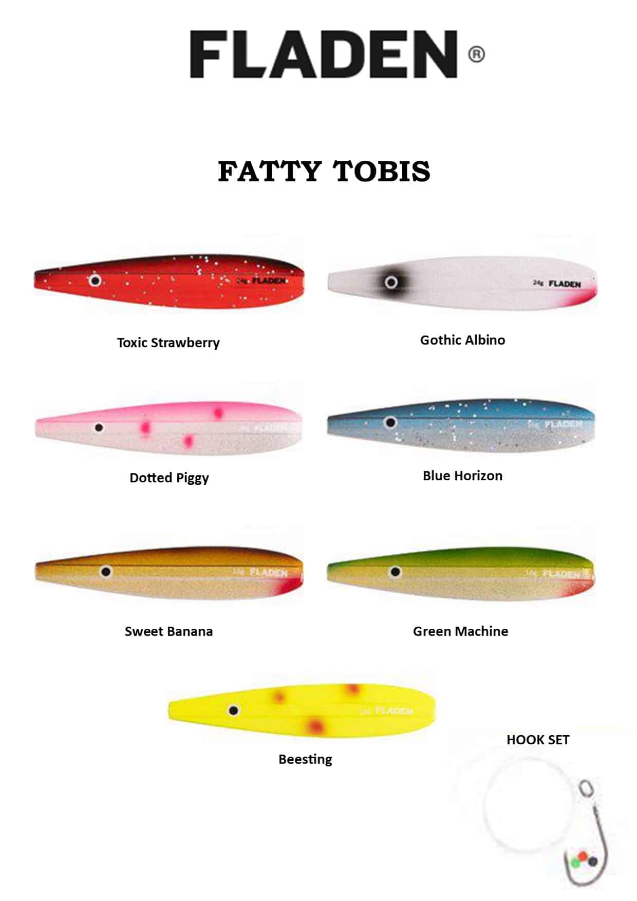 Fladen Fatty Tobis er et bredt inline-blink lavet af zink der bevæger sig men en bølgende gang og er perfekt til fiskeri i lavvandsområder.