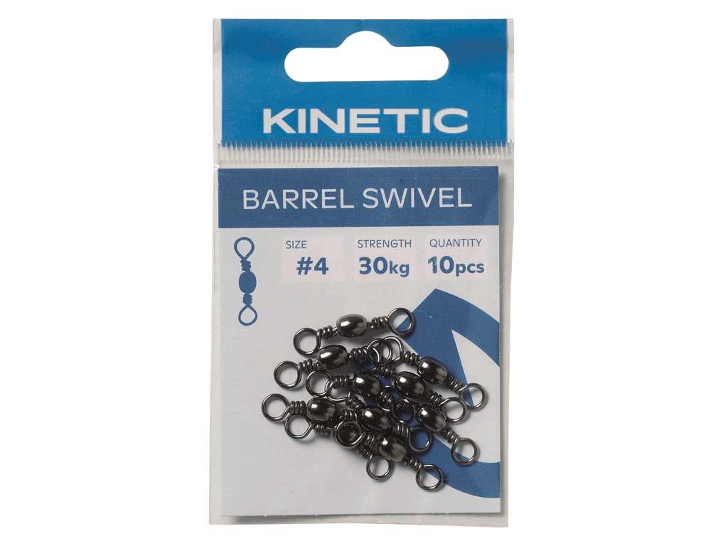 Kinetic Barrel Swivl er helt klassiske swivler til mange forskellige typer fiskeri, slip for at din line twister og giv dit endegrej en mere svømmende aktion, med en Kinetic Barrel swivel.