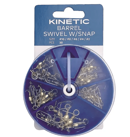 Kinetic Swivl w/snap er et 30 stk klassisk messing swivl sortiment med hægte til spinnefiskeri.