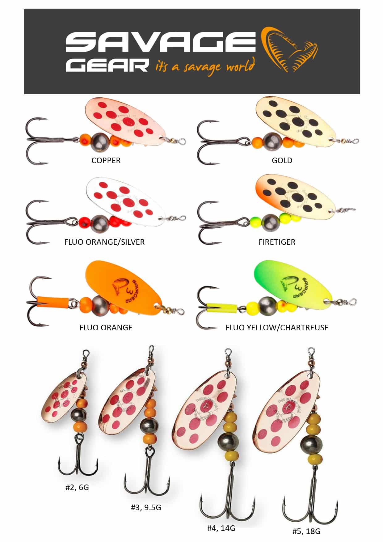 Denne serie af spinnere er af høj kvalitet og anbefales til alle, der fisker efter rovfisk i ferskvand, herunder aborre, gedde, laks, ørred og mere, uanset om det er i åer, søer eller bække.