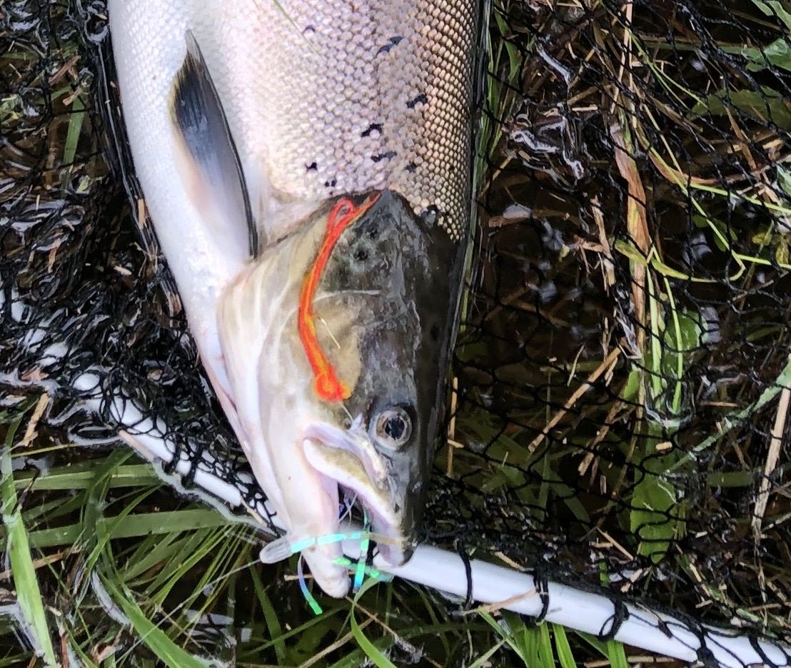 Det betyder at laksen har svært ved at “spytte” ormen ud og så skal krogen ellers bare sættes…